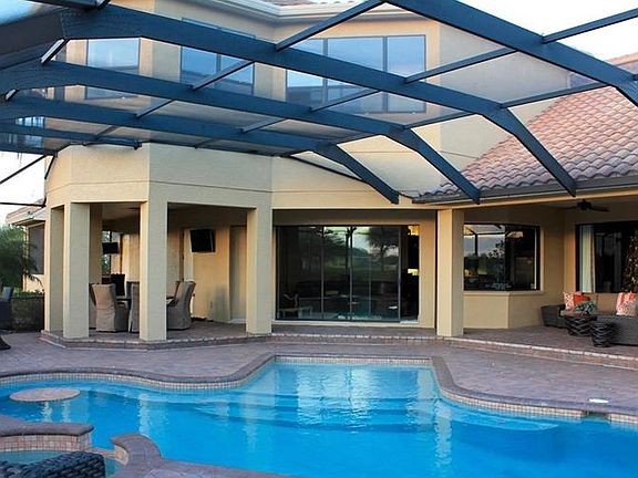 Luxury living at its finest! Located in The Preserve, a premiere Eaglebrooke neighborhood, this home is situated on the 17 tee with an amazing golf course view. Professionally decorated, the attention to detail is impeccable. A cool color palette and high ceilings make this remarkable home perfect for entertaining. Beautiful entry with a stone fireplace and coffered ceiling. Dining room features a built in display cabinet with glass shelving and granite counter pass through. Kitchen has stainless steel appliances, granite counter tops, double sinks, over sized built in refrigerator, and extended bar area for extra seating. The large family room is beautifully detailed with an exposed wood beam ceiling and view of the pool area. Master bedroom includes two spacious walk in closets with automatic lighting, his and her sinks, garden tub with large shower. Two downstairs bedrooms are adjoined by a bathroom that has been updated with Corian counters. A fourth bedroom and bath is located upstairs along with a private movie theater room, wet bar area and closed in porch offering spectacular views of the golf course and lake! The pool area has multiple seating areas, private spa and built in kitchen truly makes it seem like you are on a permanent vacation. Mature landscaping, plantation shutters, brick pavers, and two separate garages are just a few more features this magnificent home has to offer, This is a MUST SEE, schedule your showing today!