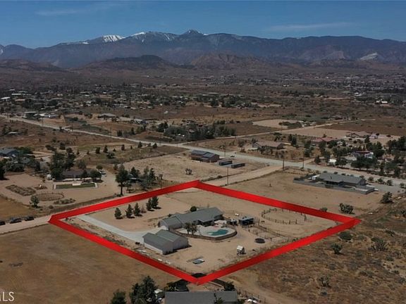 Your search is over, welcome to your Ranch home of your dreams with endless possibilities! This stunning one story home boasts 5 bedrooms and 3 and 1/2 baths with a split floor plan. Walk into high ceilings, barn doors, recessed lighting, laminate wood flooring, crown molding and shuttered double pane windows. Completely ready and turn-key for you to move in. Ample kitchen with granite countertops, plenty of pantry, cabinet and counter space. Equipped with separate indoor laundry room. Brand new HVAC, Water heaters and Solar Panels. Outside you get the best of both worlds. Covered cemented patio with pool and outside lighting and brand new pool pump. Just beyond the gate ready for your livestock! Horse stalls with 3 sided shelter and chicken coop. Sitting on almost 2 acres you will not run out of space. 3 garages. One 2 car garage attached and a detached shop large enough for 4 cars and RV parking. There is infinite uses for this property, Bring your ATV's bring your horses, bring your chickens bring your livestock. Also get your snow gear and be ready to hit the slopes at Mount High! Don't miss out on this dream home...it will not last!