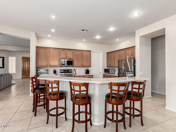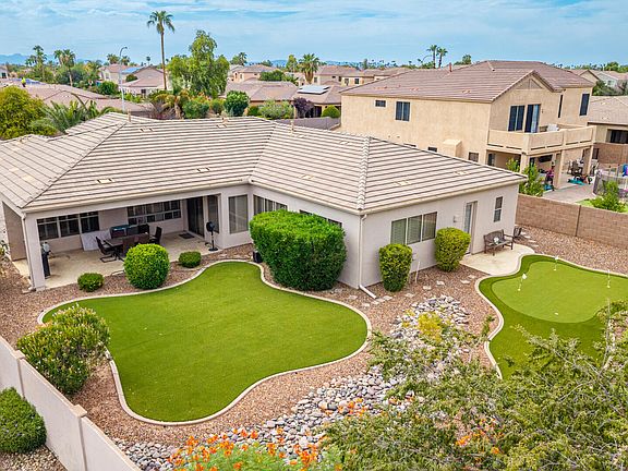 Welcome to Cooper Commons in Chandler. This standout home blends style and comfort. The exterior has a stone facade and easy care desert landscaping. An inviting open floorplan with formal living and dining rooms and much more. Kitchen shines with a beautiful island which opens to the family room and is perfect for gathering family and friends. 42'' cabinets, stainless steel appliances, large pantry and a fun, futuristic ''magic sink'. The family room gas fireplace and Bose sound system. Cozy breakfast nook overlooks the covered patio. Split primary bedroom, office with backyard access, and Jack-and-Jill bath for secondary bedrooms make this home as practical as it is charming. Putting green in backyard will help you relax and improve your short game. improve your short game. You can also relax w/easy care synthetic grass and desert landscaping. The community itself offers playgrounds, walking paths, pickleball and more. Great way to meet new friends. COME ON BUY!