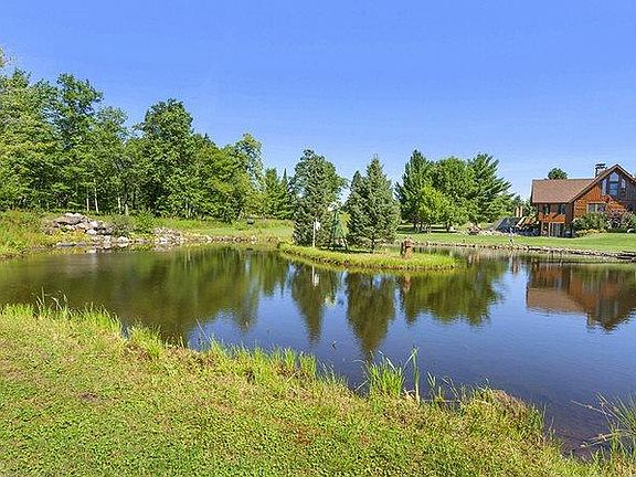 This is an awesome, super home. Some additional room measurements: main floor foyer is 10'9" x 9'5" with slate flooring; the hot tub room is 11' x 16'3"; there's a storage room in the lower level that is 25'3" x 10'3", all poured concrete; the attached garage is 24' x 24' and the detached garage is 40' x 28'. The main floor features a massive stone fireplace; in the sunroom there's a gas fireplace; and in the lower level family room there's a wood-burning fireplace. The hot tub room is connected to the family room, and there's a wet bar in the family room, and a large space for your pool table. The grounds on this property are amazing. They feature a huge man-made pond, a perfect patio for entertaining, and gorgeous landscaping. The heat is provided by an underground wood-fired boiler, with natural gas backup.