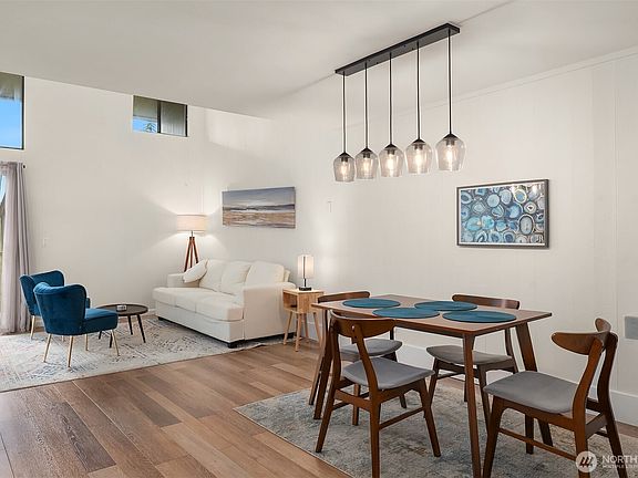 Welcome to the resort-style Sixty-01 Village in Redmond! This refreshed townhome features vaulted ceilings, dramatic floor-to-ceiling windows, and serene lake views. Enjoy a new coat of interior paint, updated kitchen with wood cabinets, brand-new stainless appliances, and modern fixtures. The full bath shines with new tile, quartz vanity, and flooring. Upstairs offers fresh carpet and ample storage. Relax on your private deck or explore 83 acres of lakes, trails, pools, clubhouse, gym, and more. Gated entry, covered carport, and ideal location near Microsoft, Google, and HWY 405/520 in the award-winning Lake Washington School District.