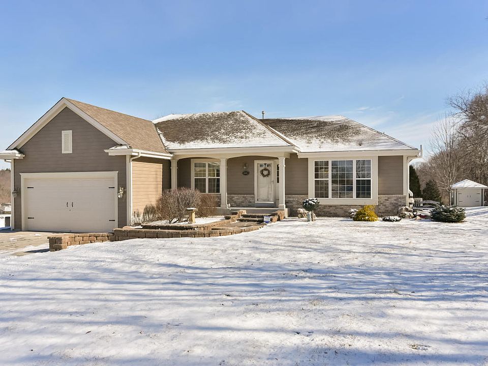 Enter this lovely country ranch and instantly feel at home! Open and inviting floor plan includes large kitchen with maple cabinets and floors, granite counter tops and island.Enjoy your amazing views from the dining room which leads to the beautiful deck. French doors lead to a sun drenched Florida room perfect for relaxing. Living room with tray ceilings, 3 bedrooms, an office, and 2 full baths round out the main floor. Downstairs is a gorgeous family room, office, bedroom with a gigantic walk in closet, and full bath. Walk out to your private park-like yard and enjoy! Slinger Schools await