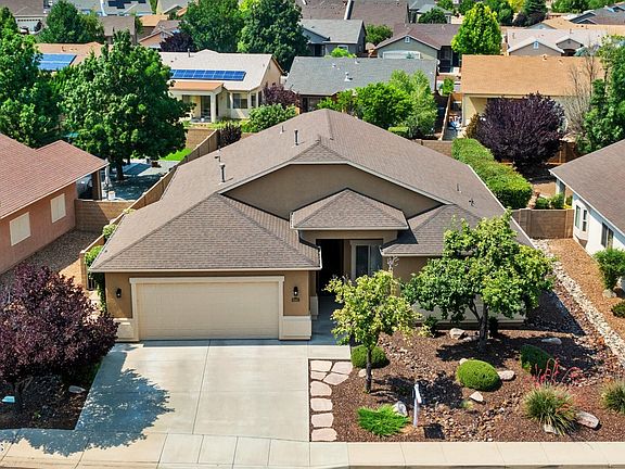 BRAND NEW ROOF - This upgraded & updated Granville home is tucked away on an interior street and with a north/south exposure lot, this lovingly maintained, 2,037 sq. ft. 4 bedroom/2 bath home is turnkey and ready for its next chapter! The enduringly popular split floorplan is spacious, with ample rooms from top to bottom. Lovely curb appeal will greet your visitors, starring neatly manicured, mature landscaping and a charming security door at the covered entry. The large great room leads to a bright, inviting dining area with bay windows for added views and excellent light. Kitchen is well appointed, with a pantry and extensive cabinetry (42'' uppers) for good storage, eat-at island, new stainless-steel sink and RO system, classic granite countertops, gas cooktop with outside-venting range hood, wall oven, and a French door refrigerator. Unwind at the end of the day in the oversized primary suite, with his-and-hers walk-in closets, dual sink raised vanity, private commode closet, garden tub, and a large separate shower in the very shareable ensuite bathroom. Walk-in closets are also available in two of the three secondary bedrooms. Household chores are made a little lighter with a utility sink and cabinetry in the laundry room, not to mention an LG front loading washer & dryer set. Home has been repainted both inside and out, with a stylish neutral for the 2-tone interior. Window treatments include blinds, shutters, and shades, while beautiful, upgraded tile and hardy vinyl plank flooring have you covered underfoot. Built-in cabinetry helps keep you organized in the 2-car garage, where an insulated overhead door provides energy efficiency and enhanced comfort. Enjoy solo R&R or let the good times roll with friends on the covered patio and the added deck with pergola and party-ready bar. Your refreshing, fully fenced backyard is highlighted by a lush hedge for privacy, center lawn with sidewalk surround, and raised garden beds to please the green thumb in your household. Take advantage of Granville's huge list of amenities, included with a very reasonable HOA fee: three clubhouses with community activities, pools, fitness rooms, playgrounds, basketball, pickleball and tennis courts, a dog park and more! Just minutes from home are Prescott Valley's ever-expanding shopping options, restaurants, medical facilities, entertainment, and all you could need or want from day to day.