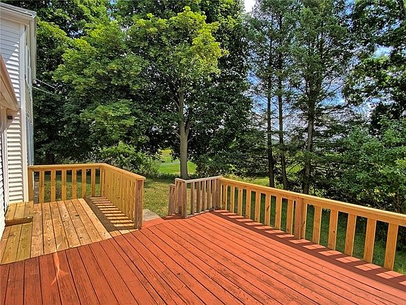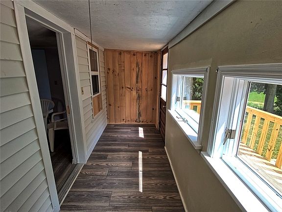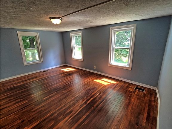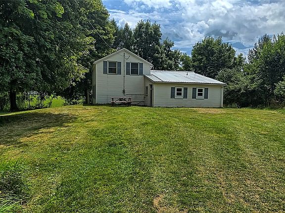 Beautiful Farmhouse Colonial that's been fully renovated with newer flooring, paint, electric, plumbing, roof, sump pump, interior renovations and more! It just doesn't get any better! This early 1900's home offers a contemporary kitchen with walk-in pantry, just off the kitchen you will find the first floor laundry and a full bathroom. The living room has restored natural hardwood floors, and offers ample space for entertaining with an additional small first floor bedroom/office space. The primary bedroom is also on the first floor and the second floor has two bedrooms and a half bathroom. Outside, you will enjoy the attached wood deck, large mowed lawn on almost two acres to explore! The property has a private drive with 2 car detached garage, natural gas, a new septic tank and a drilled well with a new whole house water filter system. All of this with no Village taxes, and just minutes from downtown Newark. This is the country home you have been waiting for!