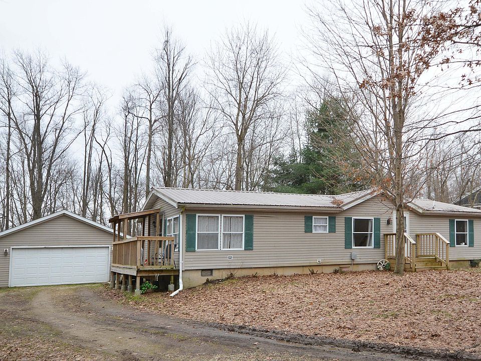 The 1 acre lot features a detached 2 car garage and 2 sheds, providing ample exterior storage. The brand new deck and porches are perfect for enjoying the wooded scenery. Conveniently located close to Elkhart and M-40, this home surely won't disappoint!