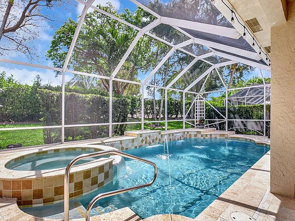 Step outside to your personal paradise a breathtaking screened-in pool with a built-in Jacuzzi, perfect for relaxing or entertaining under the Florida sun.