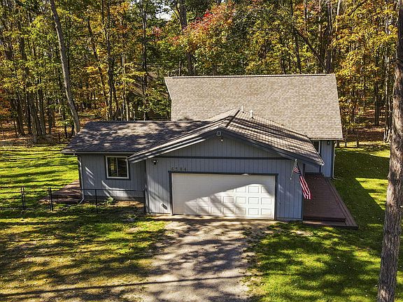 Renovated from top to bottom in 2015, this 3-bedroom, 2-bathroom charming chalet with a loft located in Michaywe is waiting for you! Vaulted ceilings and brand-new windows and doorwalls (2024) fill the home with natural light and offering the incredible woodsy view while still being on the 4th tee box of the Michaywe Pines Golf Course. Doorwalls from both the primary bedroom and living room open to a spacious back deck overlooking a fully fenced yard—perfect for relaxing or entertaining. Whether you have been looking for your new home, special retreat or even a new rental property - this home may be everything you've been looking for.