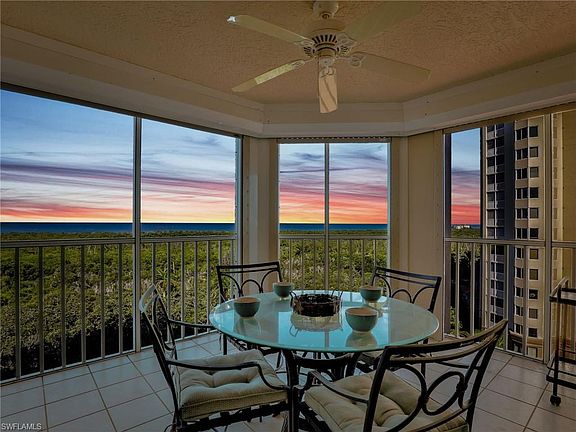 Experience breathtaking Gulf views from the 9th floor of this exquisite 2 bedroom plus den, 2 bath end-unit condo located in the sought-after St. Kitts in Pelican Bay, Naples. With stunning east-to-west exposure, this residence is bathed in natural light, making it a peaceful retreat from sun up to sun down. Whether you're sipping your morning coffee at sunrise or enjoying evening cocktails as the sun sets, the two spacious balconies, each equipped with electric roll-down storm shutters, provide the perfect setting for relaxation and enjoyment. The interior features a brand new AC, plantation shutters throughout and an inviting open layout. The den, currently opened with charming French doors, floods the entire home with sunlight, adding to its bright and airy atmosphere. St. Kitts is part of the Pelican Bay community, where luxury and lifestyle are at the forefront. After St Kitt's undergoing two years of extensive renovations, the outdoor living space now boasts a magnificent new pool. The newly remodeled social rooms and state-of-the-art fitness center are designed to meet every resident's needs, adding to the extensive list of amenities. St. Kitts offers secure lobby access, on-site management and convenient bike storage. As a resident of Pelican Bay, you'll have exclusive access to 3 miles of pristine private beaches, complete with beach side dining. Additional amenities include tennis, fitness, kayaking, and cultural events at nearby Artis Naples and Waterside Shops. Whether you're seeking the perfect place for a full-time residence or a seasonal retreat, this lovely condo offers the best of Naples living. Schedule your private showing today and see why Pelican Bay is one of Naples' most desirable communities!