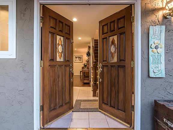 The front wrought iron gate leads you onto the covered privacy patio where you might sit w/your morning coffee or evening beverage. The inside of the home has recently been upgraded to include: hardwood floors downstairs, vinyl windows throughout including (5) patio sliders, new window blinds in all rooms, new interior doors and hardware, all downstairs rooms recently painted including crown & base molding and LED recessed lighting. The formal dining room has a ceiling fan and pass-thru counter top to the kitchen. The kitchen includes a small breakfast bar/eating area and is open to the family room. The downstairs bedroom is now an office/study has a ceiling fan w/light and a patio slider for access to the front privacy patio. The powder room is accessible from the room or the hallway.Upstairs is the large master bedroom w/ceiling fan, large walk-in closet, vanity & sink. The master bath has recently been remodeled to include new medicine cabinet, wall mirror, light fixture, new sink & faucet and curved satin nickel shower rod. There are 2 additional bedrooms. This is definitely a place to call home!