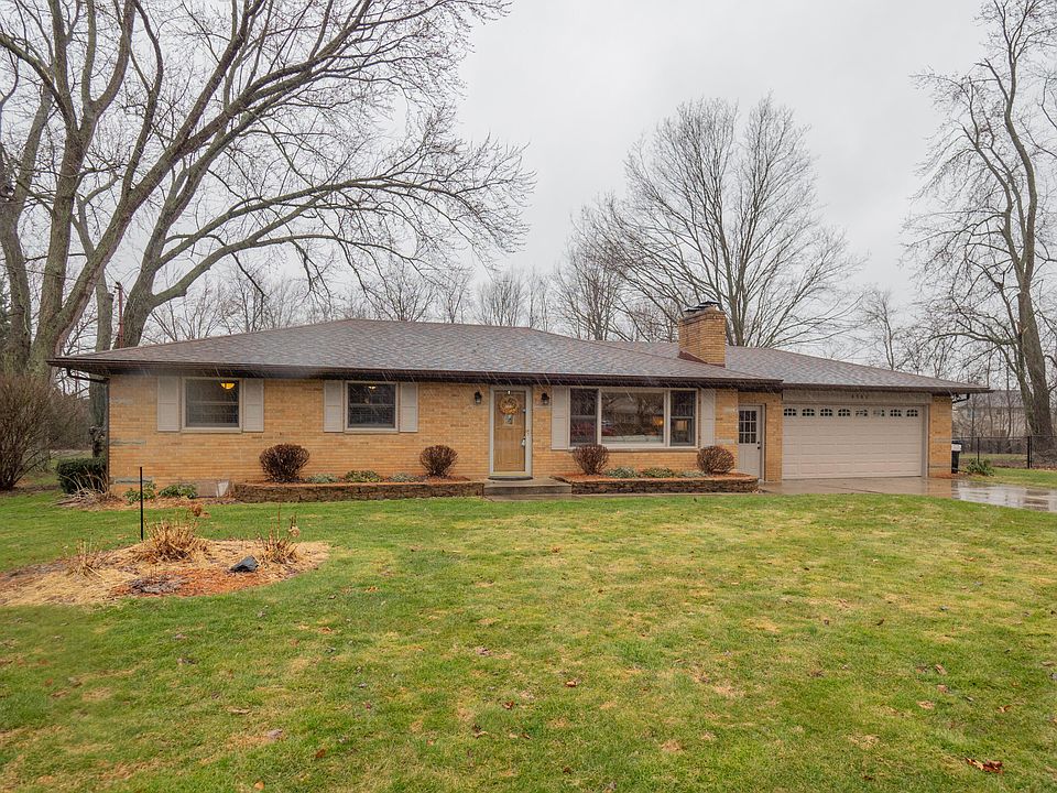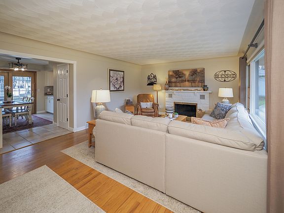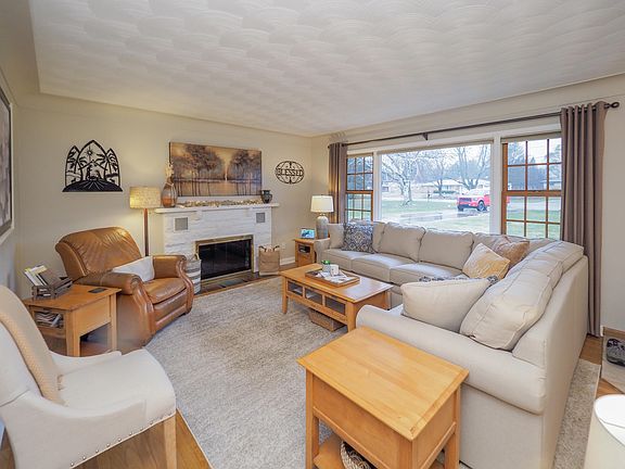 Welcome home! A beautiful 3-bedroom, 1.5-bath ranch nestled on a nearly acre lot on a quiet cul-de-sac. Through the front doors, you are greeted with a light & open floor plan with gorgeous hardwood floors throughout. The living room has a cozy wood fireplace & windows overlooking the front yard. The eat-in kitchen was renovated in 2021 & features updated appliances, & doors leading out to the back deck. The main floor has 3 bedrooms & 1.5 baths, including the primary suite with a private 1/2 bath. The finished lower level includes a spacious family room with a gas fireplace, an office space that could be turned into a 4th bedroom, a large storage room, & laundry with a brand new washer & dryer. The backyard is an entertainer's paradise, complete with a deck, patio, & an enclosed above- ground pool with a Trex deck. This home is a must see! Schedule a showing today!