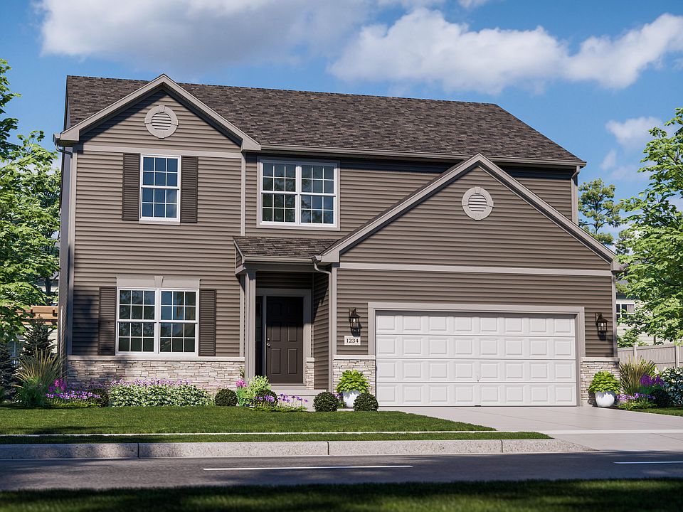 Under Construction - Estimated December/January Completion! Welcome to the Sapphire -- a thoughtfully designed two-story home in the desirable Winfield area, located within the highly rated Crown Point School District. Offering 3 bedrooms, 2.5 baths, a spacious loft, and a full unfinished lookout basement, this home blends style, functionality, and room to grow. Step inside to 9-foot main-level ceilings and an open-concept layout, perfect for everyday living and entertaining. Just off the foyer, a versatile flex room provides the ideal space for a home office or playroom. A convenient powder room is nearby before flowing into the spacious great room, which opens seamlessly to the kitchen. The chef-inspired design features a 7-foot island, pantry, and a bright cafe dining area with backyard views and no rear neighbors. A mudroom off the garage entry adds everyday convenience. Upstairs, retreat to the generous primary suite complete with a walk-in closet and private bath featuring a 5-foot shower with seat and a double-bowl vanity. Two additional bedrooms, a full bath with granite vanity, a convenient laundry room, and a spacious loft -- perfect for a second family room-- complete the upper level. Stylish finishes include luxury vinyl plank flooring in all wet areas and granite counters in both upstairs baths. The full lookout basement provides endless potential for a future recreation room, home gym, or storage -- designed to suit your lifestyle. Ideally located just minutes from Crown Point Square, local parks, shopping, dining, and I-65, this home offers the perfect combination of comfort and convenience. There's still time to choose your finishes including cabinets and countertops to make it your own. Ask about builder financing and current promotions today! Please note: Photos are of a model home featuring the same floor plan. Finishes may vary