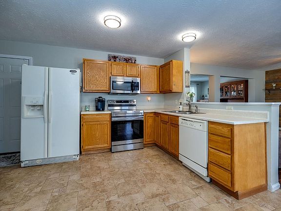 - Features: Solid Surface Ctr, Tile Floor, Walkout, Wood Cabinets