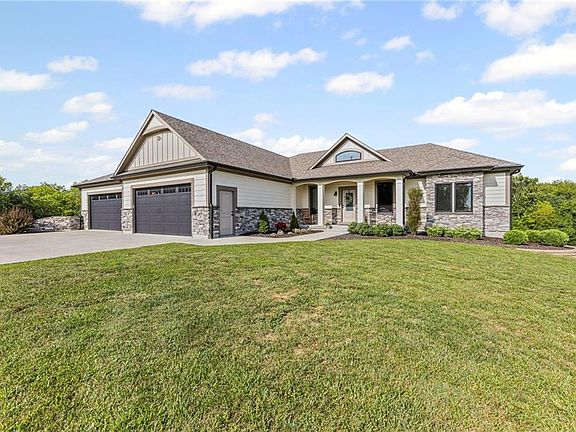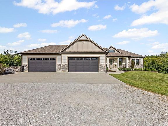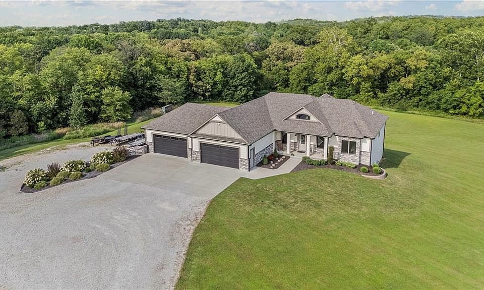 **Luxury Meets Country Serenity**. Wow! Nestled on nearly 10 acres of picturesque land, this newer-built home offers the perfect balance of seclusion, space, and convenience. A coveted reverse 1.5-story floor plan, the design emphasizes an open, sunlit layout that showcases gorgeous views from every angle. Inside, you’ll be greeted by sparkling hardwoods, soaring ceilings, and designer finishes thoughtfully selected to elevate every detail. The main level blends sophistication with livability—ideal for both daily living and entertaining. Car enthusiasts, storage-needy or hobbyists will marvel at the expansive 4-car garage on the main level, paired with a suspended floor system that reveals an additional 4 garage bays below—a rare and exceptional feature. Step outside and enjoy the sweeping acreage, where privacy and tranquility abound, yet you’re still just minutes from quick access to town conveniences. This property isn’t just a home—it’s a luxury retreat in a country setting, designed for those who want the very best of both worlds.