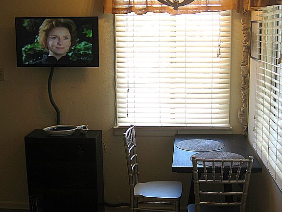 * Fully furnished * with a living room set, TV, Queen bed, desk, dining table, and more!