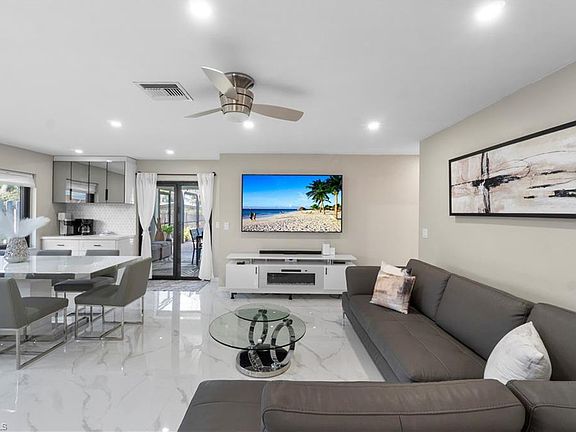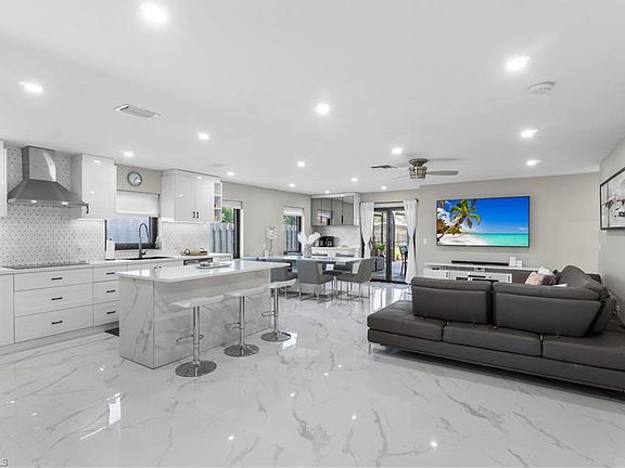 This fully remodeled 4 bedroom, 3 bathroom home combines clean modern design with the relaxed vibe people love about Naples. Inside, every room feels fresh, bright, and thoughtfully finished from the sleek open-concept living area to the beautifully updated bedrooms and baths. Smart home touches and state-of-the-art technology make everything easy, whether you're streaming a movie after the beach or adjusting the temperature with a tap. Slide open the doors and the real magic happens outside. A large, sparkling pool and oversized hot tub sit beneath a screened enclosure, so you can swim and soak without worrying about bugs. Lush palms and tropical landscaping frame the backyard, creating a peaceful, private setting for morning coffee, evening cocktails, or a late-night dip. There's plenty of space to lounge, relax, and spend time together. Located in highly sought-after Naples Park, you're in one of the best spots in town close to world-class beaches, shopping, dining, and everything that brings people back to Naples year after year. Whether you're here with family or friends, this home is designed to feel like your own luxury retreat.