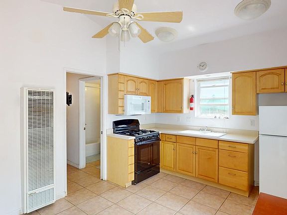 Tile flooringPrivate fenced patioCeiling fanPlenty of cabinetsWindow ac unitGas ovenBuilt-in microwave