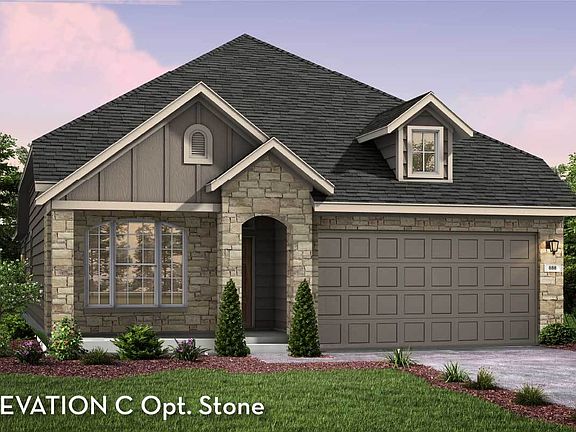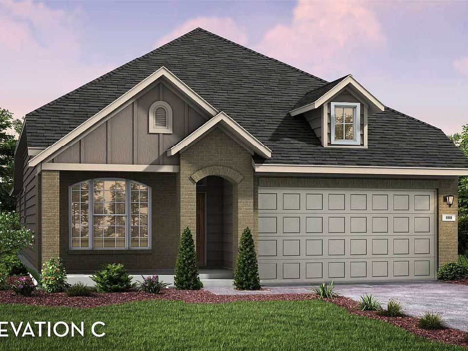 The charming Comanche plan is perfect for every type of lifestyle.. Embracing the open-concept layout, this three-bedroom, two-bathroom home allows for optimal space. The front of the home provides a quaint covered front porch, perfect for relaxing and sipping coffee in the mornings, or visiting with your neighbors. Upon entry, you are greeted by the foyer that first leads to the second and third bedrooms - each boasting walk-in closets, as well as the full secondary bathroom complete with a single vanity and a shower/bathtub enclosure that you can swap for a super shower, if you desire. Then, you are led to a short hallway that grants access to the walk-in utility room, the secluded study room, and the two-car garage. Need more space for another car or to store other necessary items? Opt for a third-car garage instead! You can also supersize your utility to maximize your space and turn the study into a smaller office niche - the choice is yours. Around the corner, you are then met with the sprawling combined family room with the option for a stylish fireplace and the dining area that opens up directly to the kitchen. With this layout, you will never worry about missing out on the fun with your guests! Boasting exclusive features, the kitchen includes ample counterspace with granite countertops, flat-panel birch cabinets, and designer light fixtures. With access from your kitchen, you will be led to your optional covered patio. Are you a fan of natural light streaming in as m