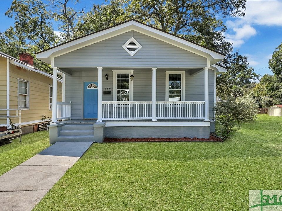 Traditional 1920’s Bungalow in great condition, new paint inside and out, with modern conveniences and many historic features including 4 original decorative fireplaces all original woodwork and plaster walls. Home has its original, traditional bungalow layout with living room open to dining room and a spacious feel with the kitchen fully open to the dining room. You will love the new cabinets and stainless steel kitchen appliances and the spacious pantry. Easy-care high grade laminate and LVP flooring throughout, and separate cabinets for great storage options. The primary bedroom has an ensuite bath with a jetted tub/shower combo and a double vanity. The second bath has a tub/shower and single vanity. A newer roof and new privacy fence makes this a great package. At the front of the home is a curb cut with space for 2 off-street tandem parking spaces. In the rear yard is a concrete pad that could be used as additional parking upon installation of a gate if so desired. Take a look!