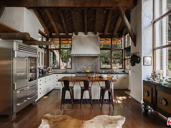 An exceptional value in coveted Santa Monica Canyonthis enchanting hacienda offers the sophistication and scale of estates far beyond its price point. Just moments from the Pacific, the property blends authentic Spanish architecture with effortless California luxury.The main home features soaring ceilings, exposed wood beams, and floor-to-ceiling windows that flood the open living spaces with natural light. A versatile mezzanine and hidden meditation area add dimension and serenity, while the primary suite enjoys a walk-in closet, spa bath, and private outdoor garden. Two additional bedrooms share a generous Jack-and-Jill bath.A remarkable piece of Hollywood history, the original Leo Carrillo barn has been reimagined as a two-story guest house, complete with a one-bedroom suite, office, and den below, and a studio apartment with kitchenette and private deck above.Set on nearly an acre of lush, gated grounds, this verdant retreat includes mature landscaping, a thriving vegetable garden, and a greenhouse for year-round farm-to-table living. Already an extraordinary entertainers' estate, it also presents an exceptional opportunity for those seeking to elevate and personalize one of Santa Monica Canyon's most charming and iconic properties.