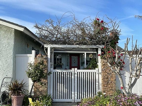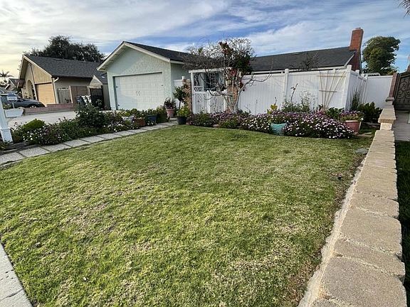Nestled in a tranquil neighborhood, this charming 3-bedroom, 2-bath home offers a perfect blend of comfort and elegance. As you approach, you're greeted by a serene garden courtyard adorned with flagstone pathway and a variety of fruit trees. The small porch at the front door provides an inviting space for morning coffee, where you can enjoy the privacy and beauty of the garden, set back from the street. Step inside to discover an open floor plan that seamlessly connects the living spaces. The living room boasts a cozy fireplace, recessed lighting, and a ceiling fan to keep you comfortable year-round. The kitchen and living area feature tile flooring, creating a cohesive and modern look throughout. Two of the three bedrooms are equipped with ceiling fans and walk-in closets, ensuring ample storage and a pleasant environment for rest and relaxation. The primary bedroom features its own en-suite bath and a patio sliding door for direct access to the spa and pool--perfect for unwinding after a long day at work or a workout. French doors lead you from dining room to an entertainer's paradise in the backyard, where you'll find an outdoor kitchen complete with a 48' Jennair stainless steel built-in BBQ, a small sink, and a granite tile countertops. The sparkling pool and built-in hot tub provide the perfect setting for outdoor gatherings and relaxation. In addition to these wonderful features, the property includes an attached 2-car garage with a large driveway that can accommodate parking for 3 or maybe even 4 cars. Located in North Oxnard, the house offers easy access to the freeway and is within walking distance of the family-friendly Orchard Park, situated right on the same street. You'll also enjoy the convenience of being close to a plenty of shopping and dining options at The Collection. A new roof and new plumbing installed within the last 18-24 months, this home is well appointed and offers plenty of upgrades. Don't miss the opportunity to make this exceptional property your own.