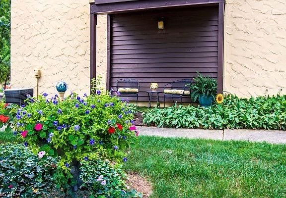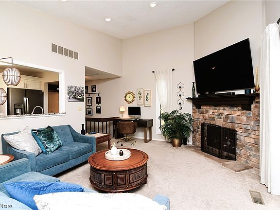 Upscale living in this beautifully renovated 2nd floor ranch style Carriage House condo.  Since 2019 all new kitchen with white soft close cabinetry, stainless steel appl., granite counters which have been extended the length of the kitchen, stunning backsplash, pantry, LTV flooring and walls to Great Room opened up or removed.  Fireplace has added brick façade, mantle and gas logs with remote control.  New carpet and fresh paint throughout.  Windows replaced in Great Room, Kitchen, Bedroom and Laundry,  (Not sliding door).  Both bathrooms have been updated with vanities, mirrors, lighting and LTV flooring.  Oversized Laundry includes washer and dryer, second refrigerator, wall of cabinets  and closet for storage plus space for your desk/computer.  Sliding glass door to deck with pond/fountain view.  Conveniently located to pool. tennis courts and clubhouse.  HOA fee includes spectrum basic cable and internet.  With close proximity to shopping, restaurants, Sand Run Metro Park, The Nature Realm, Cuyahoga Valley National Park and Towpath with hike and bike trails, look no further.  This is an absolute must see!