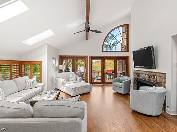 Welcome to one of Portage Lake's most sought after gems...luxury condo living at Mariner's Pointe. Upon entering the foyer your attention is immediately drawn to the gorgeous lake views and you realize you are entering the heart of this beautiful home. The sun drenched living room offering a vaulted ceiling, sky lights and cozy fireplace seamlessly connect to the gourmet eat-in kitchen while the expansive sliding doors connect both spaces to your private deck and connecting screened in porch. This unique floor plan beckons you to enjoy the privacy and serenity of all the natural outdoor beauty that makes this home so special. Tucked away off the foyer, a wet bar is perfect for entertaining while the first floor bedroom and full bath create easy alternatives for one floor living. Not to be outdone, the second floor is home to a cozy loft spot perfect for a reading nook and the master suite complete with it's own newly remodeled bath and private balcony ~ both spaces offering glimmering views of the lake. Rounding out this floor is a junior suite bedroom with it's own full bath. The lower level exudes a warm atmosphere and even more lake views with a spacious rec room with fireplace and another junior suite. The spacious laundry room with it's cabinet and counter space was previously used as a downstairs kitchen making this an easy transition to an in-law suite. Storage is at a premium with built in closets in the garage and kayak storage under the deck. Just steps away you'll find guest parking and your boat dock on the West Reservoir. Extensively renovated within the last 10 years this home is ready for those who want to relax and enjoy all the beauty the Portage Lakes has to offer.