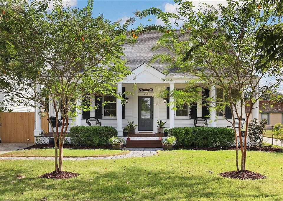 Now's your chance to discover a home where timeless character meets modern convenience. This turn-of-the-century Cape Cod, with its white picket fence and welcoming front porch, offers a rare opportunity to own a home that has long caught the eye of neighbors and those just passing by...The home has been renovated to drastically reduce its effective age while preserving its charm. The open floor plan connects the living, dining, and kitchen areas, with a leathered granite countertop complementing the classic architecture. The coffee/wine bar with an under-the-counter fridge was added, making entertaining a breeze. A major interior renovation in 2020 was followed by key upgrades by the current seller, including a new roof in ('21), new windows in ('22) new PEX water supply lines, and two water heaters, one new ('22). Other updates include a new upstairs A/C ('25) a wrought iron staircase with a hinged opening for moving furniture and large items. The laundry/office at the rear of the home has updated plank tile flooring ('25). The first-floor hall bath features a new granite countertop, a garden tub, and a tile shower surround. The fourth bedroom, currently used as a dressing room, includes a movable custom chest of drawers. A new 8' fence lines the perimeter of the deep 219-foot lot, allowing vehicle access to the rear and space for a future carport or garage. A large patio wraps around the back of the house for your outdoor relaxation and gatherings. The workshop has electricity and is great for hiding away the lawn care & sports equipment. You'll love the front porch with it's new decking and porch swing. The timed garden sprinkler system keeps plants, flowers, and shrubs vibrant and healthy. There's security cameras and a front door keypad entry to add peace of mind. Flood Zone X. Don’t wait—schedule your showing today and claim the chance to make this Old Jefferson beauty yours!