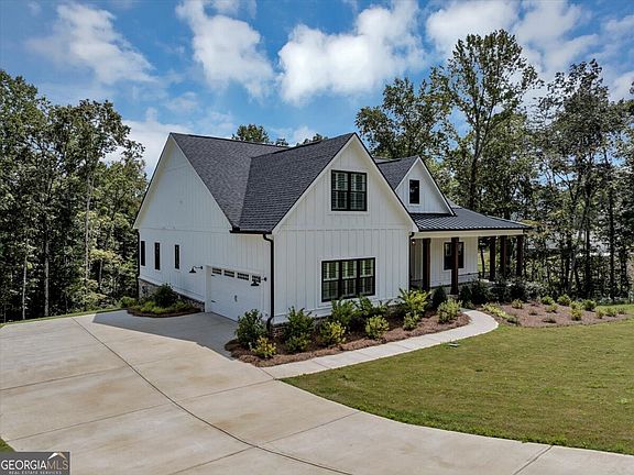 Step into refined elegance at this stunning Ball Ground residence. Designed with sophistication and comfort in mind, this home features soaring ceilings, expansive windows, and a seamless open layout that exudes modern luxury. The chef's kitchen is a true centerpiece, boasting quartz countertops, custom cabinetry, premium appliances, and a statement island ideal for entertaining. Retreat to the lavish owner's suite with its spa-like bath, complete with soaking tub, glass-enclosed shower, and designer finishes. Spacious secondary bedrooms and thoughtfully appointed living areas provide both comfort and style. Outdoors, enjoy a beautifully landscaped setting with ample space for private relaxation or elegant gatherings. Ideally located near charming downtown Ball Ground, this home offers the perfect balance of luxury living and everyday convenience.
