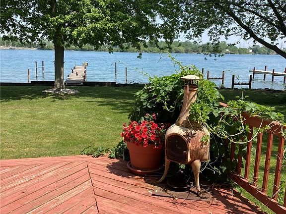 Dream setting directly on east branch of the Niagara River-no roads to cross & your private dock is just a quick walk across the backyard. Dock is 5' wide, 75' long. Morning coffee or evening beverages on the rear deck will soon become a favorite activity. Contemporary styling brings in lots of natural light. Living rm/family rm features an attractive stone fireplace recently upgraded to gas, cathedral ceilings & sliding glass door out to lower deck. 2nd sliding glass door provides easy access to the upper deck & a great water view from the eat-in kitchen. Kitchen also features a center island, ample cabinetry & double ovens. Large formal dining rm with bay window (potential 1st flr bedrm). Primary bedrm with awesome river view offers a huge walk-in closet, dual sinks, separate shower stall & relaxing whirlpool tub. 2nd full bath is also big w/in-bath linen closet. Good storage includes the full basement, rare walk-in attic & attached tall 2.5 car garage. Mature low-maintenance landscaping. Pool table/ping pong included. Two new H2O tanks. Annual flood insurance renewed 2/23 for $556.00. Quiet deadend street near Beaver Island State Park. Enjoy living directly on the water!