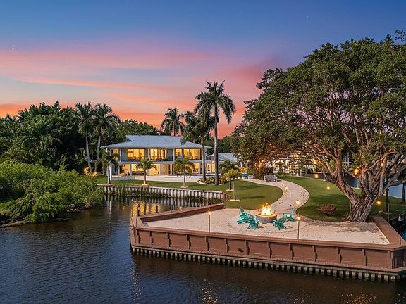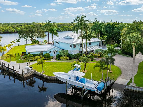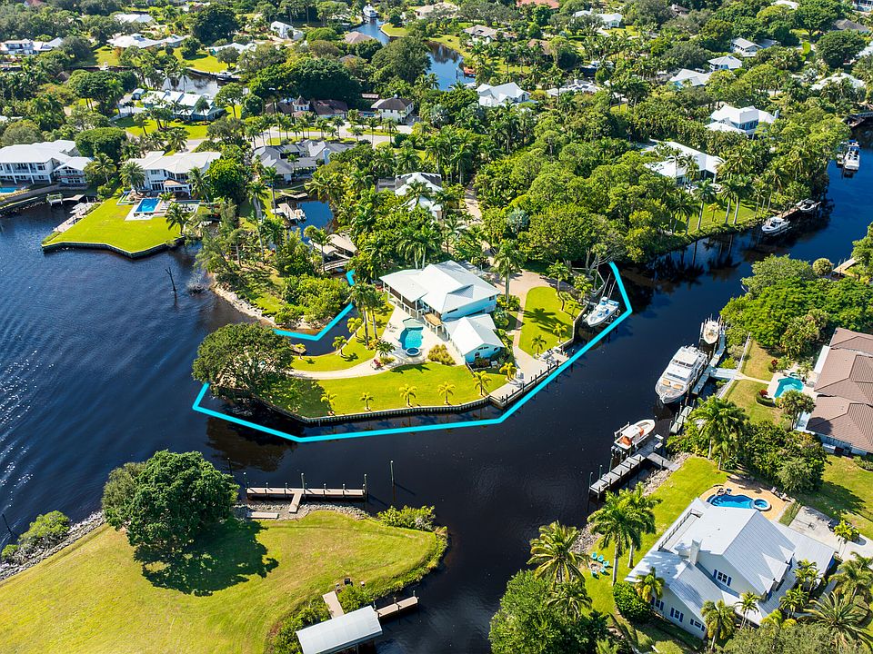 Rare opportunity to own a private peninsula estate with over 700' of shoreline on nearly 1 acre -- a boater's sanctuary with deep water, no fixed bridges to the ocean, and exceptional privacy surrounded by river views and Audubon-protected nature.This fully renovated property offers a 4BR main residence plus a 2BR/2BA guest house, ideal for multigenerational living or private guest accommodations. Enter through a Honduran Mahogany door where a heart-shaped stone set into the foyer floor welcomes you home with intention.A bright, open great room with exposed beams and bamboo flooring connects seamlessly to a 65' covered balcony overlooking the water and wildlife. The gourmet kitchen features Sub-Zero refrigeration, Fulgor range, dual dishwashers, Wolf warming drawer, built-in food sealer, trash compactor, and a custom dog-feeding station.
