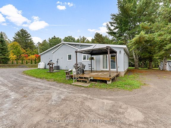 Discover the ultimate escape with this incredibly private 2 bedroom, 2 bathroom detached bungalow nestled in the heart of Greater Madawaska. With 6.6 acres fronting on the beautiful Stones Lake, this property offers a rare combination of significant acreage and desirable waterfront living. This charming and manageable 2 bedroom, 2 bathroom detached bungalow, is perfect for year-round living or a seasonal cottage. Stones Lake is known for excellent Bass and Pike fishing. The dock provides a quiet spot for swimming, fishing, or simply enjoying the peaceful views. The property boasts several outbuildings, all equipped with power, offering incredible flexibility for a workshop, studio, storage for all your toys, or potential home-based business space. Located in an area renowned for outdoor recreation. You'll be minutes from activities like hiking at Eagle's Nest, Calabogie Peaks Ski Hill, Calabogie Motorsports Park, and access to an extensive network of ATV/snowmobile trails. Despite the incredible privacy, this property offers easy access to the local village for amenities and only about an hour's drive from the City of Ottawa. Whether you're looking for a peaceful year-round home, a private recreational retreat, or a property with room to grow, this unique Stones Lake acreage delivers on all fronts.