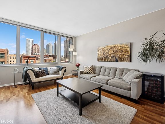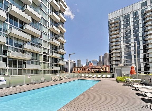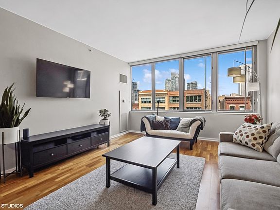 See this north-facing residence at R+D 659 with skyline views! Life's great living in the West Loop -- the middle of it all, steps to Fulton Market, Randolph Restaurant Row, Mariano's and Whole Foods, and numerous transportation lines. This unit is flooded with natural light and has a space for a home office. The ceiling has been skimcoated to provide a proper finish. The kitchen has stainless steel appliances, stone countertops, and 42-inch cabinets. The living spaces have hardwood floors, organized closets, and in-unit laundry. There is a generous-sized bedroom that can fit a king-size bed. The amenities include a pool with southern exposure, a sun deck, 24-hour door staff, a fitness center, and a dog run. NOTE: Heat, Air, Cable, Internet, Gas, Water, and building amenities are included in the monthly assessments. Parking is an additional $35K