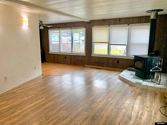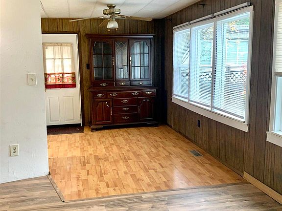 Quiet, double wide mobile home, with covered front and back porch, lots of windows to let the sunshine in. Spacious bedrooms, roomy kitchen, and two heat sources including a wood stove to help keep the heating bills down. New bathroom flooring. Great starter home, or place to downsize. Open concept layout. Metal roof was replaced 10 years ago, newer front loading washer and dryer, outbuildings and sheds. Cash only, being sold as-is. A little TLC and this could be a gem.