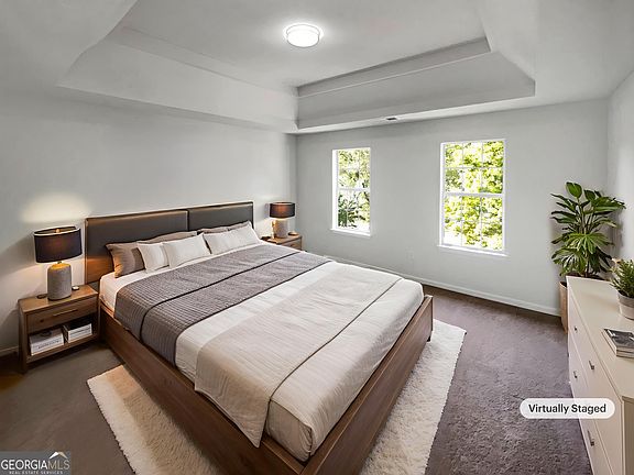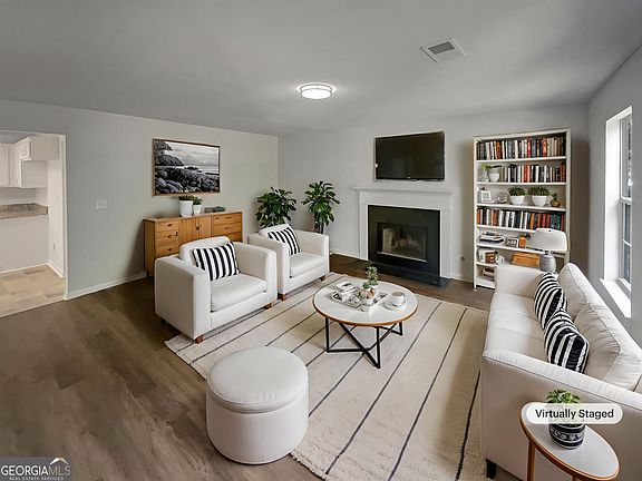Welcome to this beautifully maintained 3-bedroom, 2.5-bathroom home located in a quiet, well-kept community of Douglasville. From the moment you step into the light and bright foyer, you'll notice the attention to detail and thoughtful upgrades that make this home truly move-in ready. The spacious family room features a cozy fireplace and flows into the open-concept kitchen and dining area, perfect for both everyday living and entertaining. The kitchen features crisp white cabinets, granite countertops, stainless steel appliances including a gas range, and opens seamlessly to the dining area with lovely bay windows that fill the space with natural light. A dedicated home office with custom built-in shelving makes working from home a dream, offering both functionality and style with calming views of the backyard. Upstairs, the oversized primary suite is a true retreat, complete with a tray ceiling, a spa-like bath featuring a jetted soaking tub, separate shower, and a large walk-in closet. Two additional secondary bedrooms boast tall ceilings and walk- in closets, ensuring everyone has space to spread out. Outside, enjoy your own private escape with a fenced backyard and patio, ideal for grilling, gardening, or quiet evenings under the stars. Additional highlights include a new roof and thoughtful updates throughout. All of this in a small, peaceful community just minutes from shopping, dining, schools, and entertainment-with easy access to major highways for commuting. This home truly has it all: space, upgrades, privacy, and convenience-all wrapped up in one perfect package.