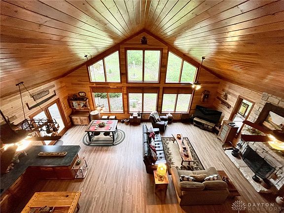 Welcome to this beautiful 3 bed, 2 bath log home located in a private wooded lot on 3.77 acres. This home has been done with extreme detail! When you enter from the front porch you will find 18 foot vaulted wood ceilings, gorgeous floor-to-ceiling windows, stone wood burning fire place, and an open concept floor plan with stairs leading up to a large loft. A master bedroom and bathroom on the main level with a large walk in closet. Off of the master bedroom there is a sunroom fit for a hot tub. In the partial finished basement is a movie screen and lots of extra storage space. Waterproof flooring has been installed in both bathrooms, living room, dining, kitchen, hall and laundry room. On the second level of the home is two bedrooms, walk in closet and a large loft that over looks the living room. Outside the home you will find a creek, waterfall feature, 3 car fully insulated attached garage with loft, 4 out buildings, covered front porch and back porch, plus more! This home is a must see for all your country living dreams! Schedule your showing today!