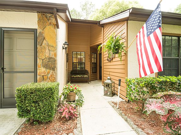Come see this cozy, well maintained, move-in-ready villa in the award winning 55+ gated golf community of Timber Pines. The kitchen has granite countertops, beautiful backsplash and designer cabinets that have soft close drawers. Vinyl flooring and ceramic tile throughout. 4 solar tubes keep the villa nice and bright. Picture yourself enjoying the beautiful Florida weather on your screened in lanai. There is also an attached, closed golf cart parking. HVAC 2014. Cable included in HOA. This village has it's own private community pool. Timber Pines offers 4 golf courses, tennis/pickle ball courts, private country club/restaurant, 2 large pools with spas, a Lodge, Performing Arts Center, exercise room & over 100 activities to join. *This is a NO pet village.