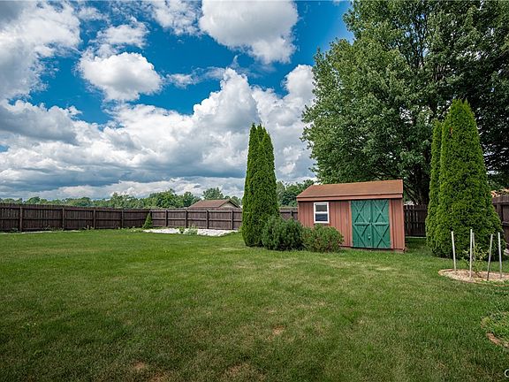 Tidy, neat-as-a-pin & MOVE-IN READY RANCH! Located at the end of a quiet road, your peaceful, one level retreat awaits! BRAND NEW ROOF (APRIL 2024)! ALL UPDATED vinyl windows! UPDATED, high efficiency gas furnace & water tank (2014), Updated & buried electrical service. All appliances stay, including washer & dryer! Filtered water feature at the kitchen sink with extra filters included. Primary Suite addition is not included in the public square footage. Adds a big walk-in closet & a spacious bath with tub. Updated 6-panel interior doors. UPDATED sliding door to the SPECTACULAR FULLY FENCED backyard with a FABULOUS screened gazebo, 12x12 storage shed, plus two additional smaller sheds. City taxes include UNMETERED water & public sewer.
