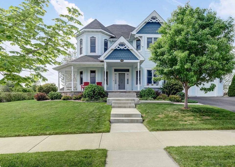 Gorgeous Victorian two story home in highly sought after Town Lakes neighborhood. Views of Hunters Lake across the street from the huge, rap around porch. Beautiful views from a private gazebo in summer, becomes a spectacular hockey rink in the winter! 3 bedroom up, 2 more in the fully finished basement. The real gem is the INCREDIBLE 4 car garage for cars and toys. Neighborhood pool, parks and trails make this an incredible home!
