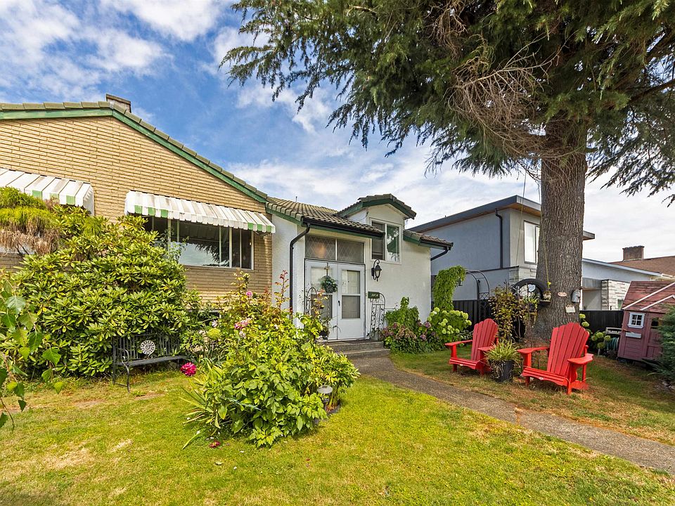 One of the most famous gardens on prime Burnaby North location. South-East facing. Close to Burnaby North Secondary and bus to SFU. Spacious "Vancouver Special" style ½ Duplex, live like a single house, 3 bedrooms up and 3 bedrooms downstairs and 2 full kitchens. Very low maintenance cost. The land is 36 feet wide and longer than 122 feet in real use.