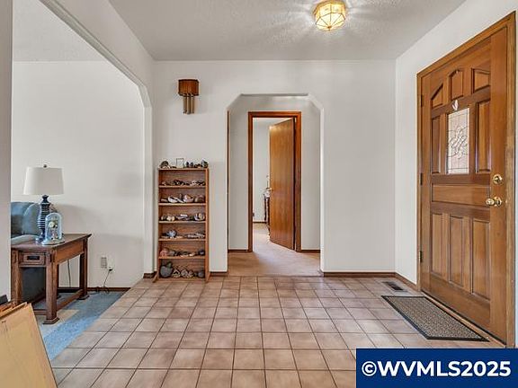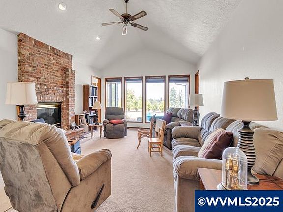 Delightful country living with delightful views to the west. Circular drive with brick front. tile entry and living room with vaulted ceiling & brick gas fireplace. Large family room off of open custom oak kitchen. Private primary with view and bath with soaking tub. 2nd & 3rd bedrooms have a jack-n-jill bath arrangement. Beautiful 1.2 acre parcel for that ideal country living experience yet minutes to shopping, good schools and easy access to I-5 and Hwy 22. Make this your "Green Acres" home!