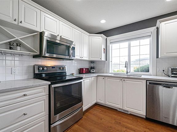 The Winchelseas; a sought after 20 unit patio home development in North Nanaimo. Rarely do these homes come on the market. This renovated residence is in immaculate condition and is over 1,300sf featuring the great room layout. It has been completely renovated nothing for you to do just move in and relax. The kitchen includes a large island with Quartz counters and wonderful feature wall in the living area with an oversize gas fireplace. Sliding door leads to a private patio. The primary bedroom is large also and includes a marble walk in shower! The second bedroom is a good size with nice office built ins and the 2nd bath has been re modelled. Newer washer and dryer; new gas hot water tank, new roof and the combination gas fireplace and heat pump provides year round comfort. Single garage plus an extra parking spot. This is a well maintained 55+ strata located close to shopping and the off leash dog park. Measurements by Proper Measure buyer to verify if important.