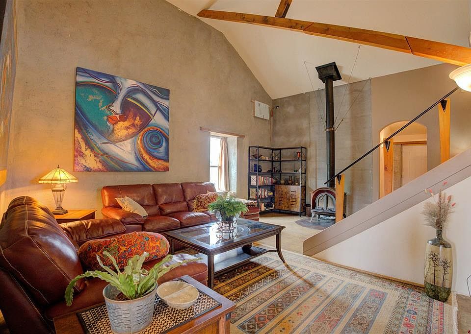 This unique and well insulated papercrete built home has so much character. A bright and cheery south facing sunroom welcomes you upon entry and leads to the heart of this special place. The open living area is inviting and comfortable with high ceilings and wood accents flowing seamlessly into separate kitchen and dining areas. An office/2nd bedroom, 3/4 bathroom, large laundry room and back entrance are also included on the main level. Stairs lead up to a cozy primary suite with 1/2 bath. This well thought out home offers plenty of storage options as well. Built from the eye of a true artist, this is definitely NOT a cookie cutter home. The included artist studio with loft can easily be converted into additional living quarters (with county approval). With 1.11 fenced acre, this gem is tucked away in it's own little world. Your chickens will love the enclosed and shaded area with coop. Great southern exposure where your gardens will thrive and several shade trees are scattered around the property. The Seller is in the process of cleaning up the grounds. This property is zoned residential but, due to surrounding uses, mixed or other use may be allowed (check with county). If you're looking for privacy, yet convenience to town, you've found it! Imagine the possibilities of this funky, cool property that is just gushing with potential. Priced to sell. Don't let this one get away!