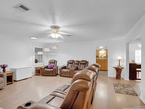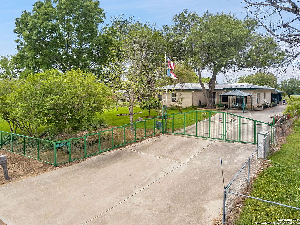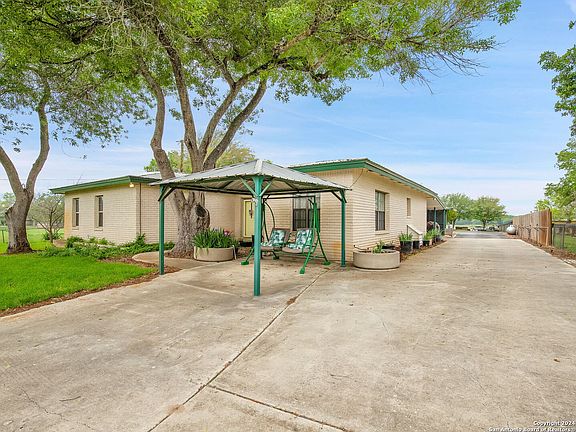 This country residence nestled on 1.36 acres in the charming city of Adkins, this rural haven offers a harmonious blend of serene countryside living and comfort. The interior boasts two generously sized primary bedrooms, each equipped with walk-in closets and a full bath, complemented by custom cabinets featuring sliders. Both primary bedrooms have updated windows. Indulge in relaxation with a luxurious garden tub, while one of the primary bedrooms is thoughtfully designed for ADA accessibility, featuring a ramp entrance, handicap toilet, walk-in shower, and 36-inch wide doors throughout the house to accommodate wheelchairs effortlessly. Adding to its versatility and convenience, the property includes an additional single-wide manufactured home, featuring three bedrooms and two bathrooms, also designed for handicap accessibility with a wheel-in shower in the master, accompanied by a large ramp for easy entrance. The roof of the manufactured home was updated approximately three years ago, providing additional space for guests or extended family members. Enjoy the convenience of a tankless water heater ensuring constant hot water supply, along with an HVAC system and roof updated approximately nine years ago, ensuring a worry-free lifestyle. The garage, featuring all roll-up doors with new rollers replaced four years ago, adds extra value. The standout feature of the property is the shop, boasting three convenient bays with roll-up doors, office spaces, and ample storage!