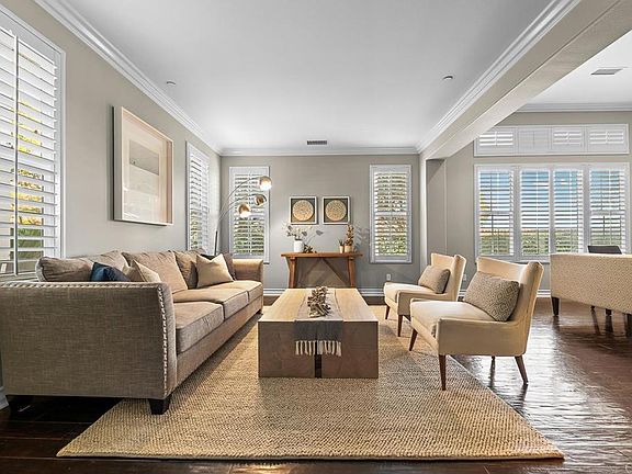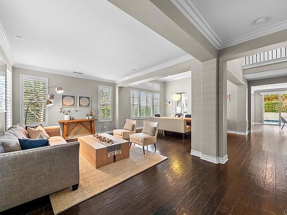 A contemporary residence designed by renowned Davidson Homes. 6599 Halite is ideally located in the prestigious La Costa Greens neighborhood on a private 10,000 sq.ft. corner lot. Complete with a separate two-story casita, this home blends sophisticated design with seamless indoor-outdoor living. Step through the courtyard entry into an open-concept interior boasting high ceilings, rich hardwood floors, and thoughtfully designed formal living and dining rooms. The chef’s kitchen is a culinary haven, featuring black granite counters, GE Monogram stainless steel appliances, built-in refrigerator, and a spacious center island, flowing into a cozy family room with a fireplace. A rare builder-option homework nook and optional bedroom/office add to the versatility to the main level. Ascend the elegant curved staircase to find four bedrooms, including a spacious primary suite with a walkout view deck and a refined marble-clad bathroom, complete with a soaking tub, expansive shower, and large walk-in closet. A versatile gym/media room completes the upper level. The recently redesigned backyard is a private oasis, featuring a sparkling pool, waterfall, and spa, paired with an outdoor bar area. A stylish lounge, centered around a sleek fire pit and framed by a striking designer wall and mature trees, creates the perfect setting for entertaining or serene evenings under the stars. Notable: Separate two-story casita, 4-car garage, tankless water heater, newer AC, owned solar electric system, and walk to Alga Norte Park, Bressi Ranch Village, and the exclusive La Costa Greens Presidio clubhouse with resort-style amenities, including tennis, pickleball, pool, gym, and rec center. Located in the award-winning Carlsbad Unified School District, this home offers unparalleled access to premier shopping, dining, and pristine beaches.