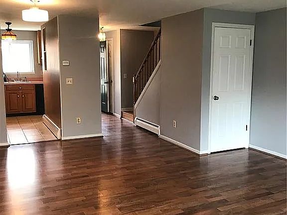 End Unit features updated kitchen, fully finished walk out basement, 2 bedrooms 1.5 bathrooms. Each bedroom provides ample closet space, with built-in AC units ensuring year-round comfort. Open floor plan complex features a pool. Bautiful neighborhood.