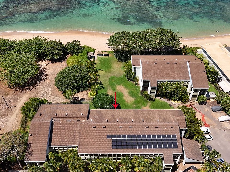 Discover the ultimate North Shore lifestyle in this beachfront 1-bedrom, 2-bathroom condo in Haleiwa. OPEN HOUSE Sunday, 2-5 pm, 9/28/25. Watch the sunset from your lanai with the scent of frangipani on the breeze and wake up to the sounds of waves crashing at the local surf breaks. The primary suite offers a tranquil retreat with ensuite bathroom. Entertain your friends in the spacious living area with breezy louvered windows, bar-top opening into the cozy kitchen and second full bathroom off the hallway. Located a short walk from world-class surf, restaurants, galleries, harbor, and more, this turnkey property is your dream Hawaii home. With turtles resting on the sandy beach, spinner dolphins frolicking offshore and humpback whales migrating past in the winter, you can’t beat the neighbors. Don’t miss your chance to own a piece of paradise!