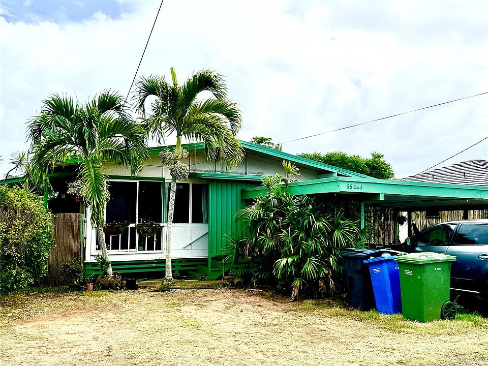 Single family home situated between Hale'iwa Ali'i Beach park and Kaiaka Beach park. Single level home on a 5000+ sq ft lot ready for your personal touches! This well loved, 3 bedroom, 1 bathroom home features high open beam ceilings throughout and a hot/cold shower outside in addition to the full bathroom inside. Large storage shed in the backyard for your toys and other personal items. Flat, grassy yard has lots of room to expand and relax. Just a few blocks to the beach and Hale'iwa town shopping and restaurants.