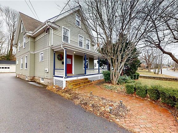 This is a beautiful home with a wonderful mix of updates and character close to downtown Westerly. Sit and enjoy your morning coffee on the wrap around porch, in the cozy den, or on the great backyard patio. Walking thru the front door, the first level boasts great hardwood floors throughout, an eat-in kitchen with plenty of cabinet space, a full bathroom, the family room, and lots of charm. The hardwood floors continue up the stairs, which showcase a beautiful stained-glass window. A full bathroom with clawfoot tub, second level laundry, two sun filled bedrooms, and a newly renovated home office space complete the second level. New stairs and new flooring bring updates to the third level primary suite, while the exposed brick from the chimney and cabinetry provide the warmth and charm of a home from the 1900’s. The bathroom within the primary suite has dual vanity, a stand-up shower, and a great tub for relaxing after a long day. The detached one car garage has a great bonus room for a home gym, additional office space, storage, or much more.