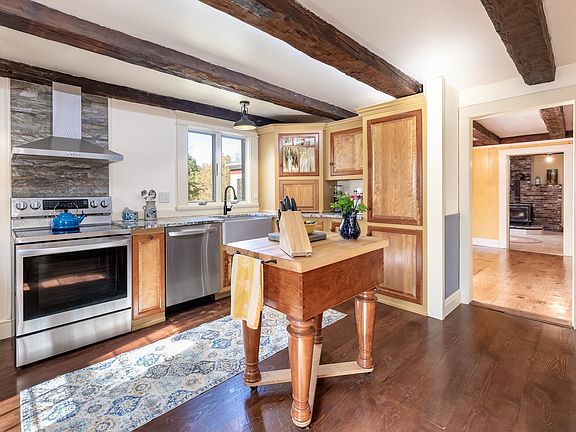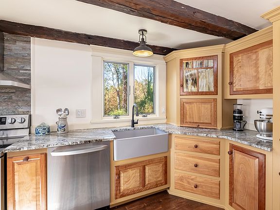 Belmont-- Own a piece of Lakes Region history- Welcome to the iconic Hickory Stick Farm, this classic red New England farmhouse blends antique charm with thoughtful updates across 5 picturesque acres adorned with gardens, old stone walls, and a traditional picket fence. Perfect for the homesteader or ideal for an in-home business. Inside, you’ll find 3 bedrooms and 3 baths anchored by the warmth of 4 wood burning fireplaces and wide-plank pine floors. The sunroom atrium offers a peaceful spot to enjoy morning coffee while the sun rises over the backyard oasis, while the inviting family/game room creates space for relaxation and entertainment. The kitchen is a showcase of craftsmanship, featuring custom cherry and curly red birch cabinetry and high-end finishes and built-ins throughout the home. Step outside to a setting designed for gathering and enjoyment. A screened gazebo is perfect for entertaining and summer evenings lounging by the in-ground pool adding to the property’s retreat-like feel. The two-story classic New England barn offers endless possibilities, while the detached, heated workshop—complete with a pellet stove—is ideal for a home business, woodworking, or car enthusiasts. This special property is steeped in history, rich in character, and surrounded by nature’s beauty. Hickory Stick Farm is a rare opportunity to own a timeless piece of New England heritage and create your own legacy on this iconic property.