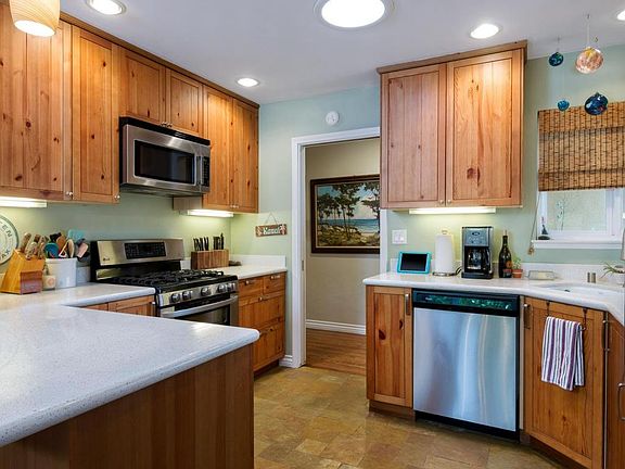 Beautiful home and large garden lot! Gorgeous kitchen remodel with knotty pine cabinetry and quartz fleck Ceaserstone counters and chef's range. Peaceful yard spaces are an exceptional addition to beauty of the interior. Recent upgrades: master bath, solar panels, 95% efficient furnace, roof, batt insulation, paint, LED lighting, smooth ceilings, crown molding and baseboards. Fully fenced yards.